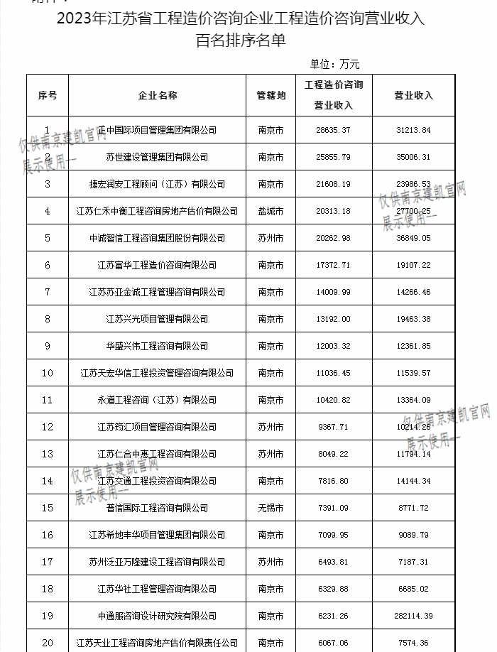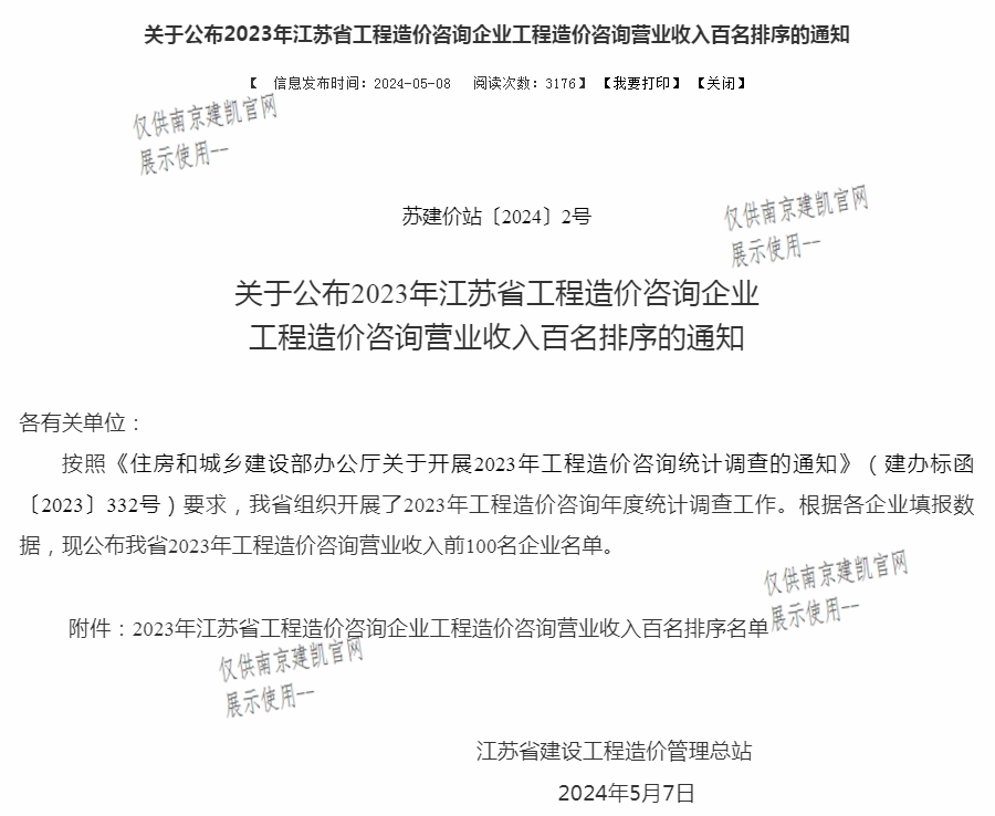 热烈祝贺我司荣获“2023年江苏省工程造价咨询企业工程造价咨询营业收入前百名企业”