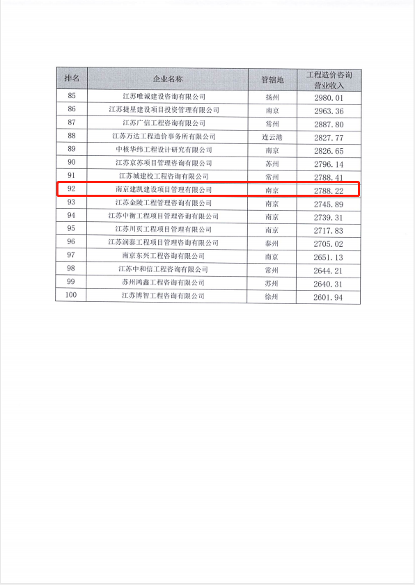 热烈祝贺我司造价机构进入“2021年江苏省工程造价咨询企业工程造价咨询营业收入”百强名单