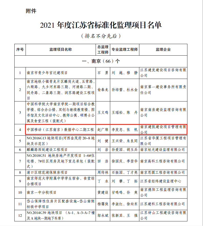 恭喜我司2个监理项目评选为“2021年度江苏省标准化监理项目”