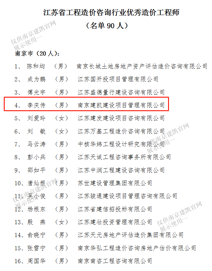 祝贺我司李庆传同志荣获江苏省工程造价咨询行业优秀造价工程师!