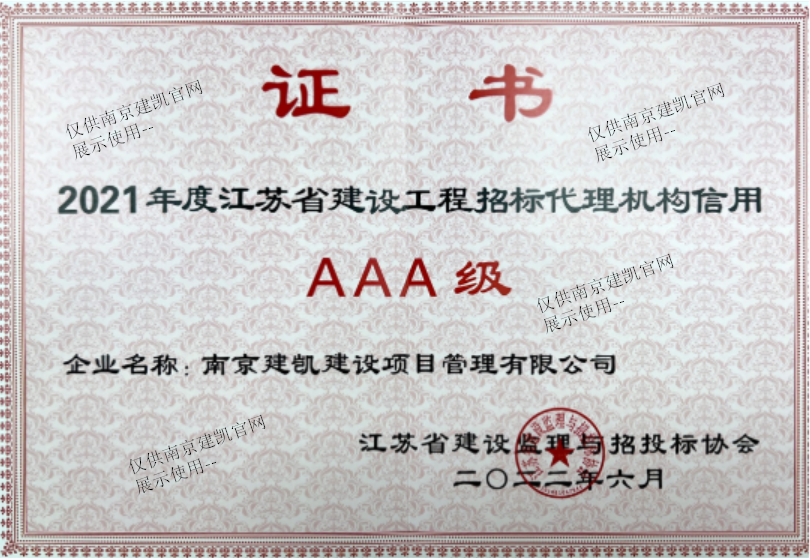 恭喜我司招标代理部在2021年度建设工程招标代理机构信用评价中荣获“AAA”信用等级