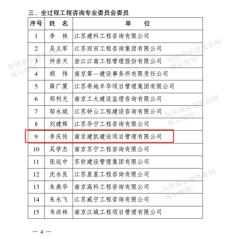 恭喜我司李庆传同志入选“江苏省建设监理与招投标协会全过程工作咨询专业委员会组成人员名单”