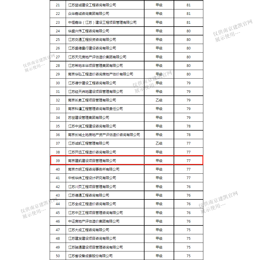 恭喜我司入选“南京市2022年四季度工程造价咨询企业信用分值排名前20%企业名单”