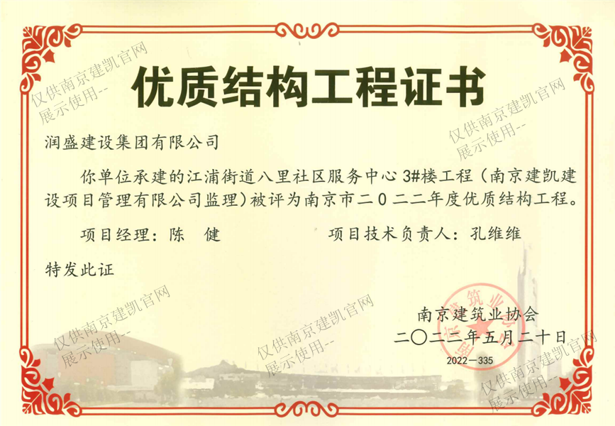 南京市二0二二年度优质结构工程(江浦街道八里社区服务中心3#楼工程)