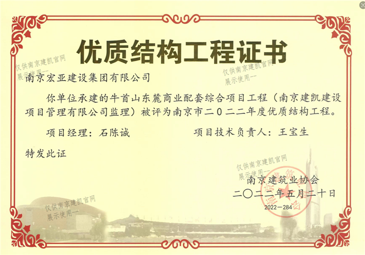 南京市二0二二年度优质结构工程(牛首山东麓商业配套综合项目工程)