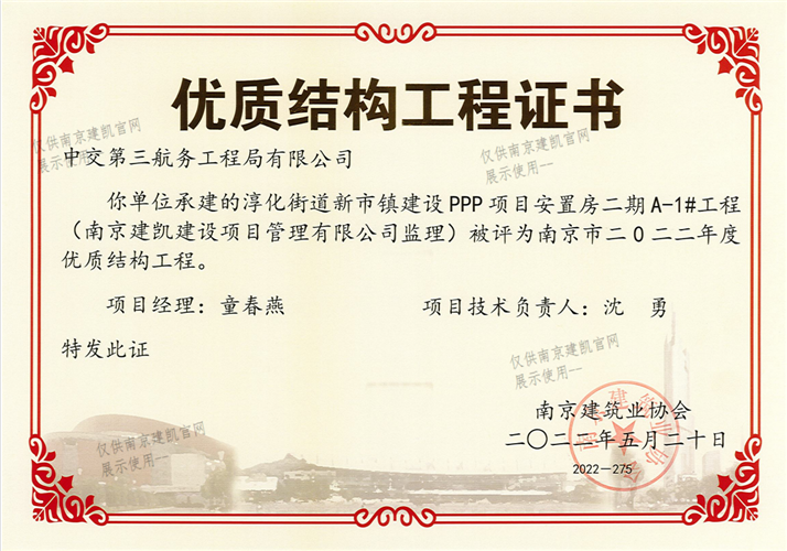 南京市二0二二年度优质结构工程(淳化街道新市镇建设PPP项目安置房二期A-1#工程)