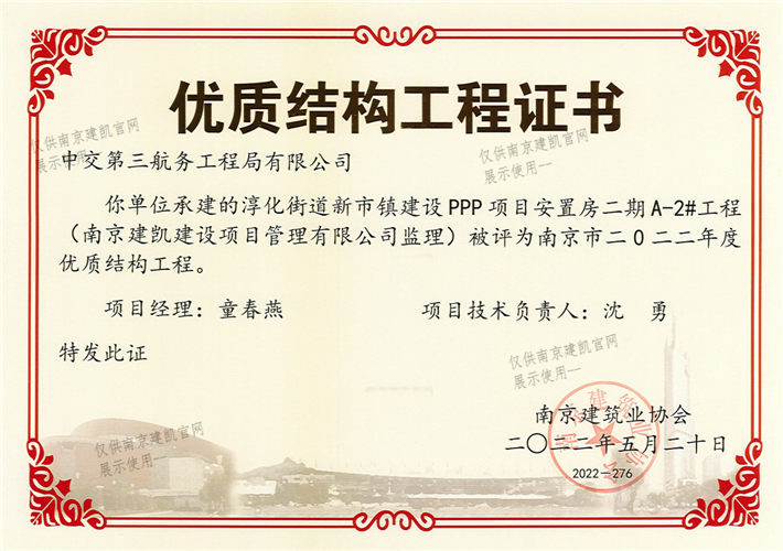 南京市二0二二年度优质结构工程(淳化街道新市镇建设PPP项目安置房二期A-2#工程)