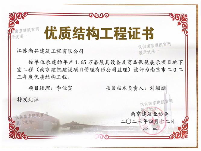 南京市二0二三年度优质结构工程(年产1.65万套展具设备及商品保税展示项目地下室工程)